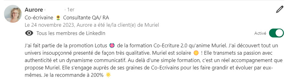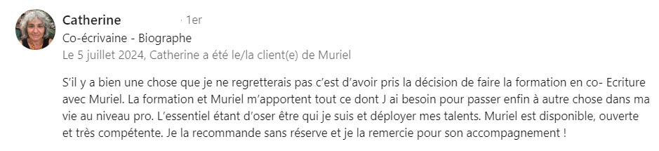 D'un côté, la compétence de la co écrivaine est de savoir recevoir et structurer les informations reçues. Puis de les écrire, bien évidemment.